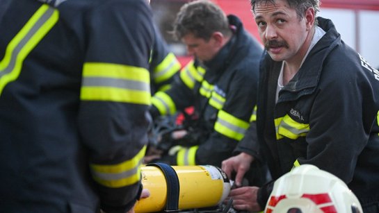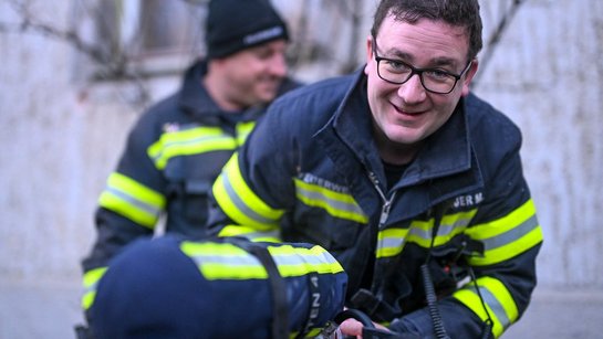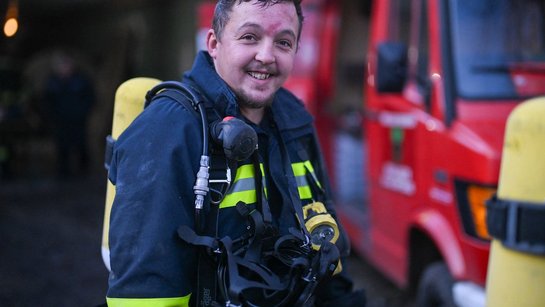 In einem Szenario mit schlechten Sichtverhältnissen und engen Räumlichkeiten mussten die Einsatzkräfte unter Atemschutz verschiedene Aufgaben bewältigen: