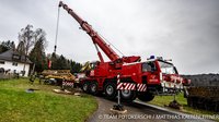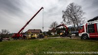 Die Feuerwehren Aurach und Vöcklabruck wurden zur Bergung alarmiert. Mithilfe des Feuerwehrkrans Vöcklabruck, der Seilwinde des Tanklöschfahrzeuges der Feuerwehr Aurach sowie eines Ladekrans einer Baufirma konnte das umgestürzte Gerät wieder aufgerichtet werden.