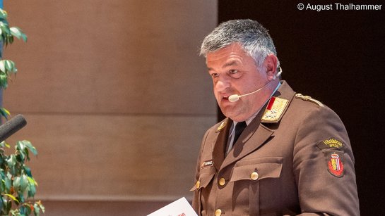 Feuerwehrpräsident Robert Mayer, MSc hob in seiner Ansprache hervor, dass die neuen Herausforderungen nur mit einem starken “WIR” zu bewältigen sind. Ebenfalls sollen Veränderungen als neue Chancen gesehen werden und diese soll man positiv sehen. Es muss aber immer der Mensch im Mittelpunkt stehen.