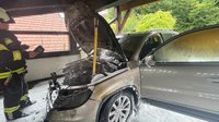 "Die starke Rauchentwicklung war weithin sichtbar, beim Eintreffen schlugen die Flammen aus dem Fahrzeug und drohten, auf das Carport und nebenstehende WohngebĂ€ude ĂŒberzugreifen!â